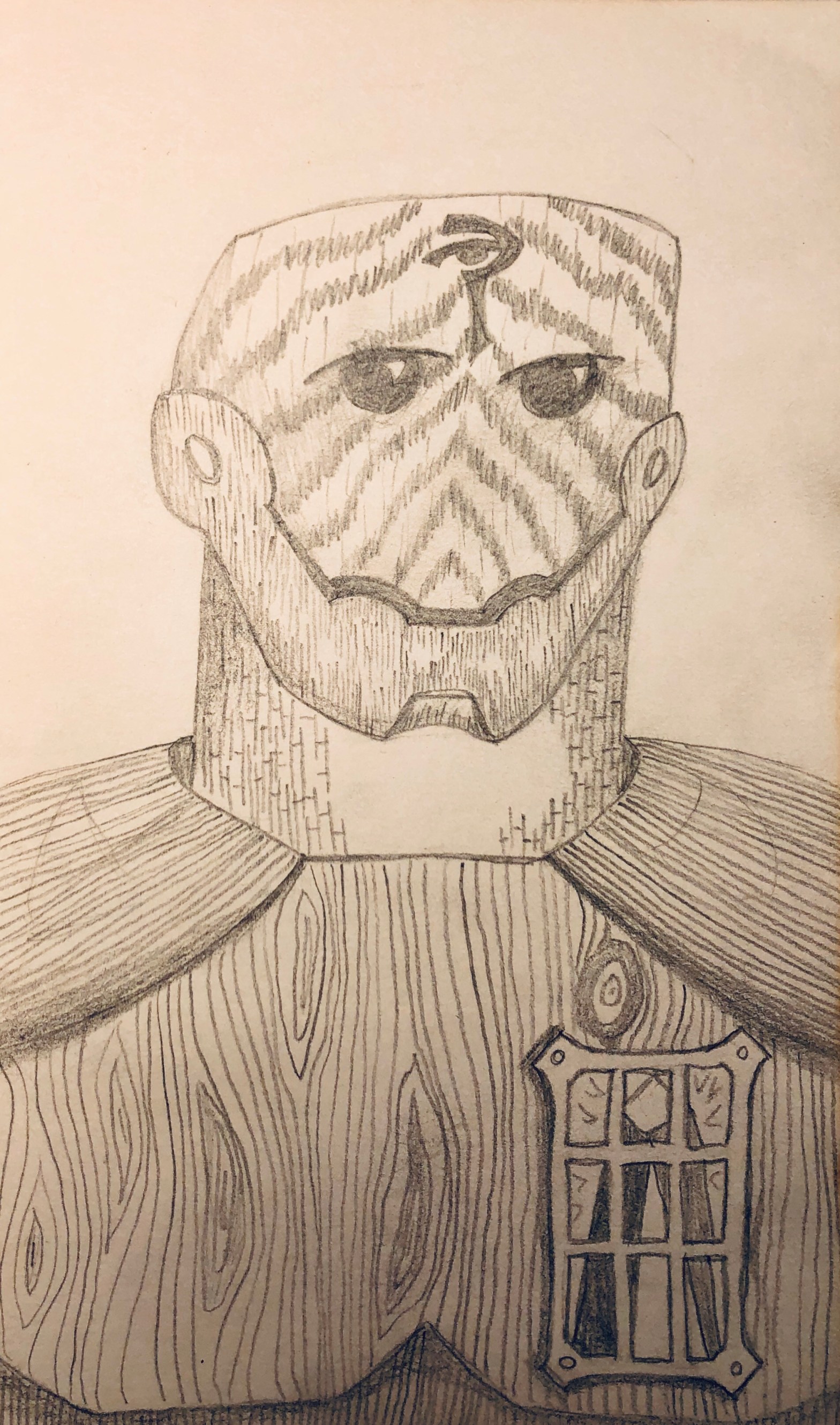 Among our odd little party, Travis and I are the most obviously unlike the others in appearances. He is a particularly interesting creature, a mysteriously animated man made of wooden elements, none of which are still living but somehow together make a sentient person. He’s a machine of some sort, but obviously much more complex …